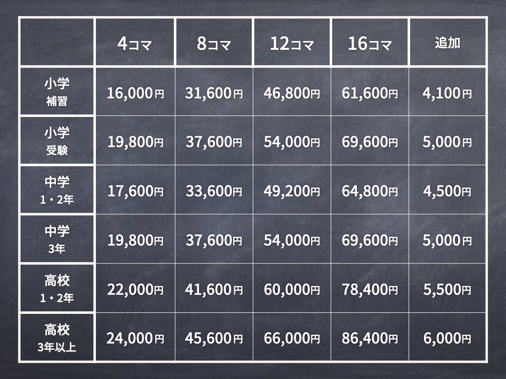 月々の授業料は、学年・通塾回数・受講コースによって異なります。
